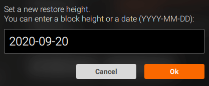 2) Next, enter your new restore height, which should be the number of the block in which your first incoming transaction was included. If you have the transaction ID (txid) of the first incoming transaction, you can enter it in a block explorer to check in which block it was included.